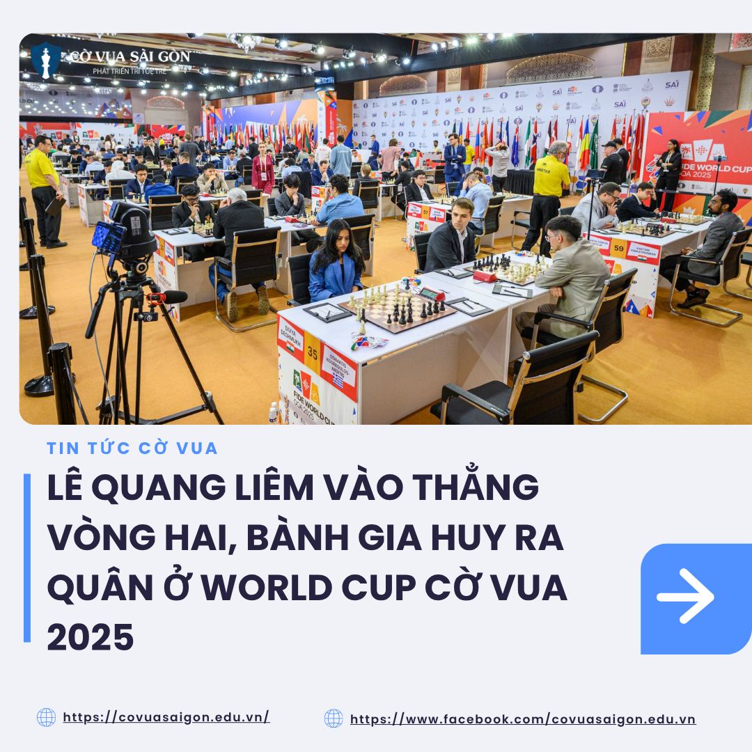 LÊ QUANG LIÊM VƯỢT QUA VÒNG 2 FIDE WORLD CUP 2025 Sau hơn 2 giờ thi đấu kịch tính, GM Lê Quang Liêm đã xuất sắc đánh bại GM Baadur Jobava, khi đối thủ phải dừng cuộc chơi ở nước cờ …