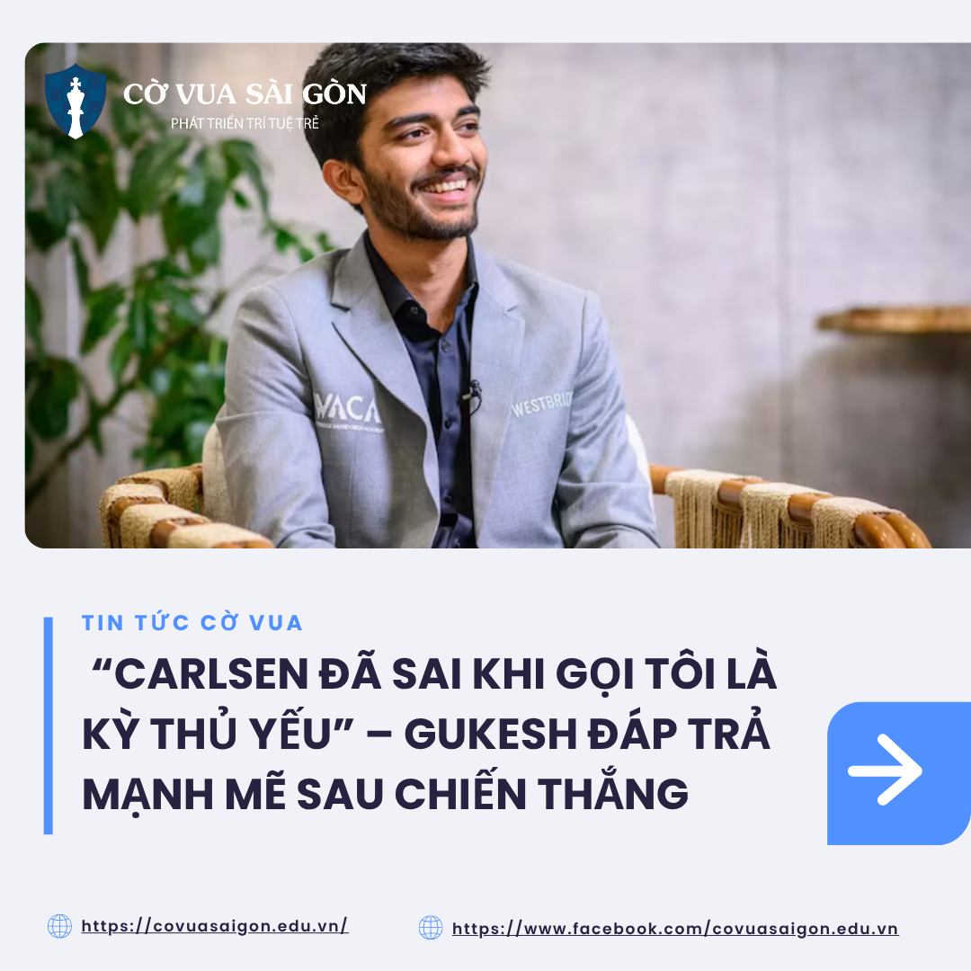 “CARLSEN ĐÃ SAI KHI GỌI TÔI LÀ KỲ THỦ YẾU” – GUKESH ĐÁP TRẢ 🔥 Sau khi đánh bại Magnus Carlsen tại giải Superbet Chess Classic 2025, kỳ thủ 18 tuổi người Ấn Độ – Gukesh Dommaraju – không ngần …