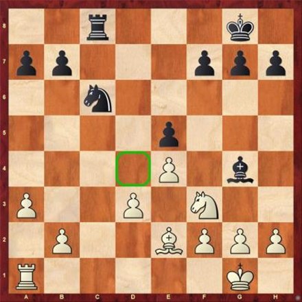 Ô mạnh ở thế cờ này là ô d4, nhưng đang được Mf3 bảo vệ ô này nếu Đen đặt Md4 thì sẽ bị Trắng Mxd4. Nên đen cần loại bỏ quân Mã Trắng bằng cách “ăn quân”: 1…Txf3, 2.Txf3 Md4. Đen đã kiểm soát được ô d4 và đặt được Mã lên d4.