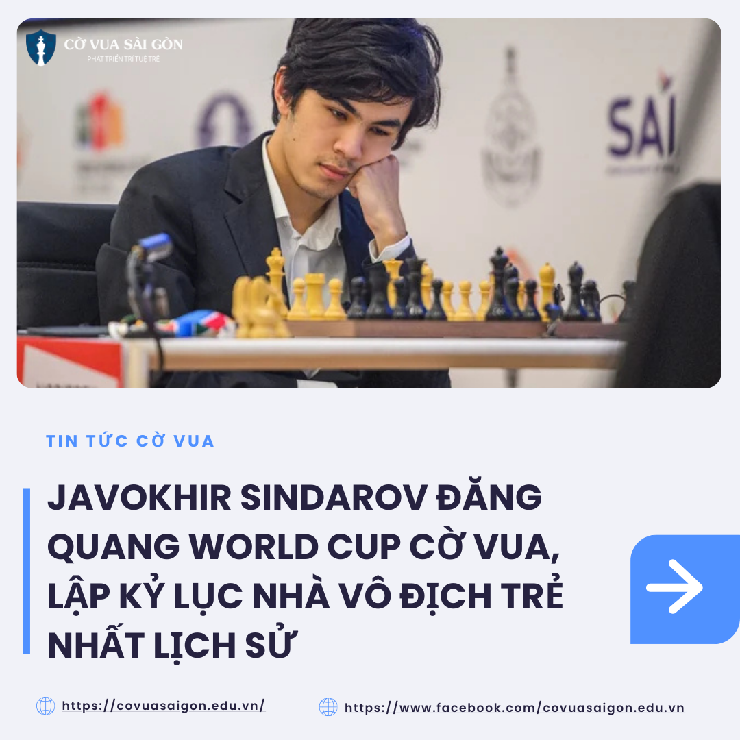 Kỳ thủ 19 tuổi người Uzbekistan, Javokhir Sindarov, đã xuất sắc vượt qua Vi Dịch (Trung Quốc) trong loạt tie-break chung kết World Cup cờ vua. Qua đó ghi tên mình vào lịch sử với tư cách nhà vô địch …
